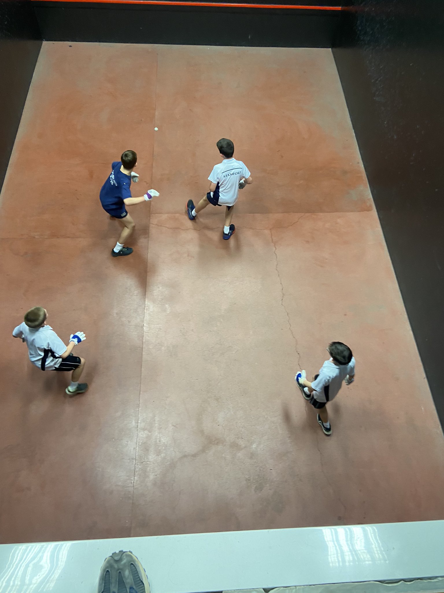 In the singles, it quickly became clear that Berkhamsted, who were playing the sport for the first time as Eton Fives specialists, were going to be the school to beat, with 5 out of 6 of their entrants qualifying for the knockout stages. Stamford, however, were certainly not going to roll over, having consistently improved since Mr Smith introduced fives at the school – and were also genuine contenders for the title, with Jones and Hunter winning their groups comfortably.