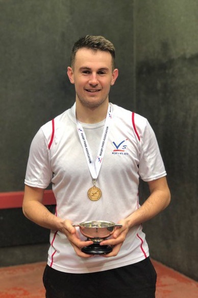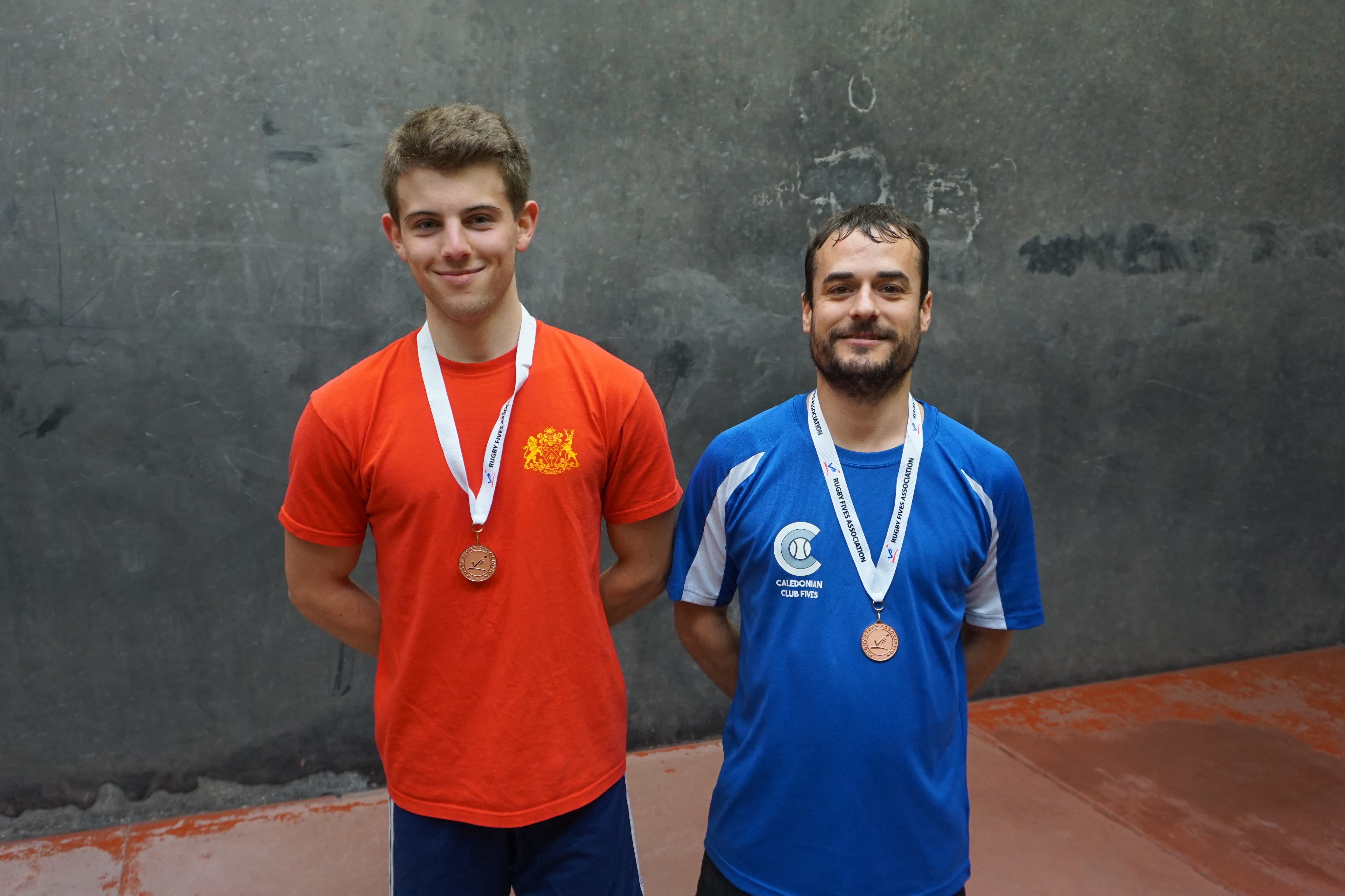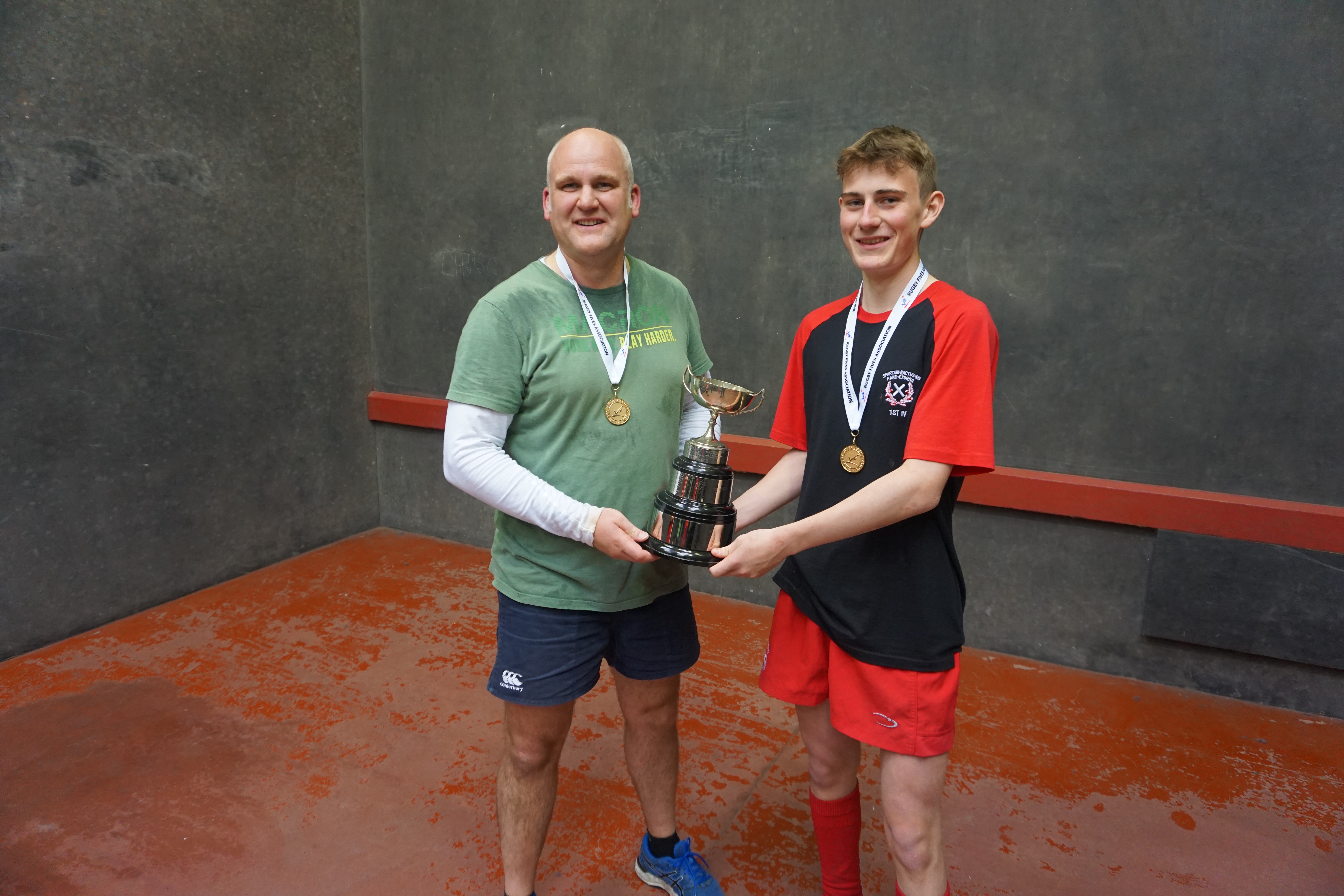 In the main draw the first round saw a good game between Douglas Law, recently crowned National Rugby Fives Mixed Doubles champion, and the Edinburgh Academy coach, Hector McFarlane. The closest quarter-final was the game between Durham captain Christian Blackaby and Caley Club captain Mike Kemp. We had to wait for the semi-final between Richie Murby and Tom Watkinson to see a three-game tussle. There Tom had the disappointment of missing out on his first regional Singles final slot, while the victor, Richie, had little left in his legs for the final to challenge defending champion Dave Butler, who duly walked off with his third Cuthbertson Quaich.
