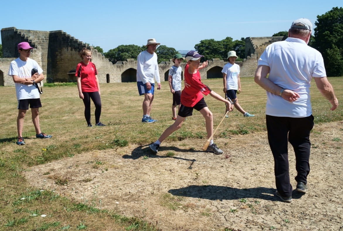The large courts were also used for a game with wooden bats (battledores) called Keeping Up, which Oscar tried and enjoyed, although we struggled to find a ball to match the bounce of their original.