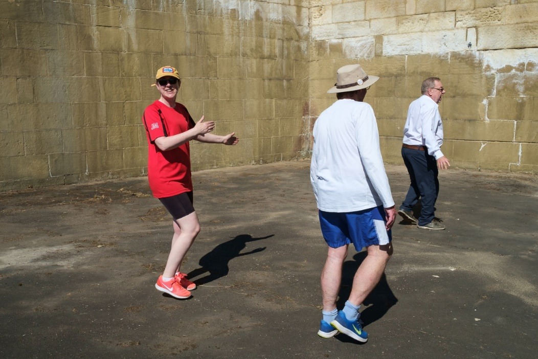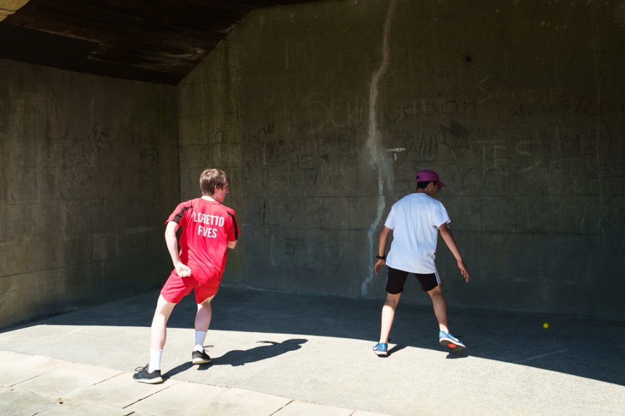 Plenty of space, and sun in the large Keeping Up/Handball court. There are three of these courts, but only one playable currently. Chris Seddon from the St Cuthbert’s Society, Ushaw, was explaining the rules.