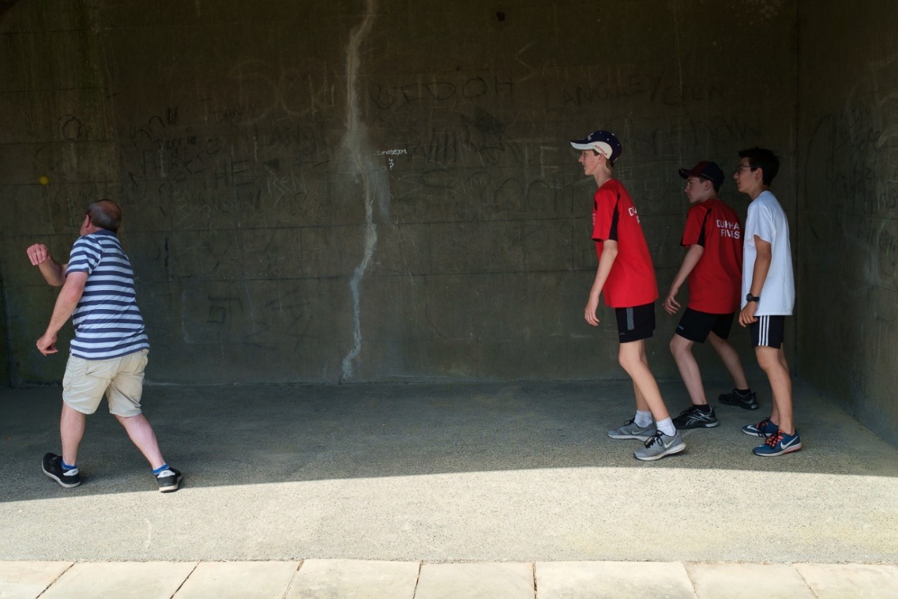 The buildings are closed to visitors on Sundays, but we camped out on the sports field and were soon joined by Chris Seddon of St Cuthbert’s Society, Ushaw (not related to the college in Durham). Chris is an expert on the games which were played at the college when it was a Catholic Seminary.