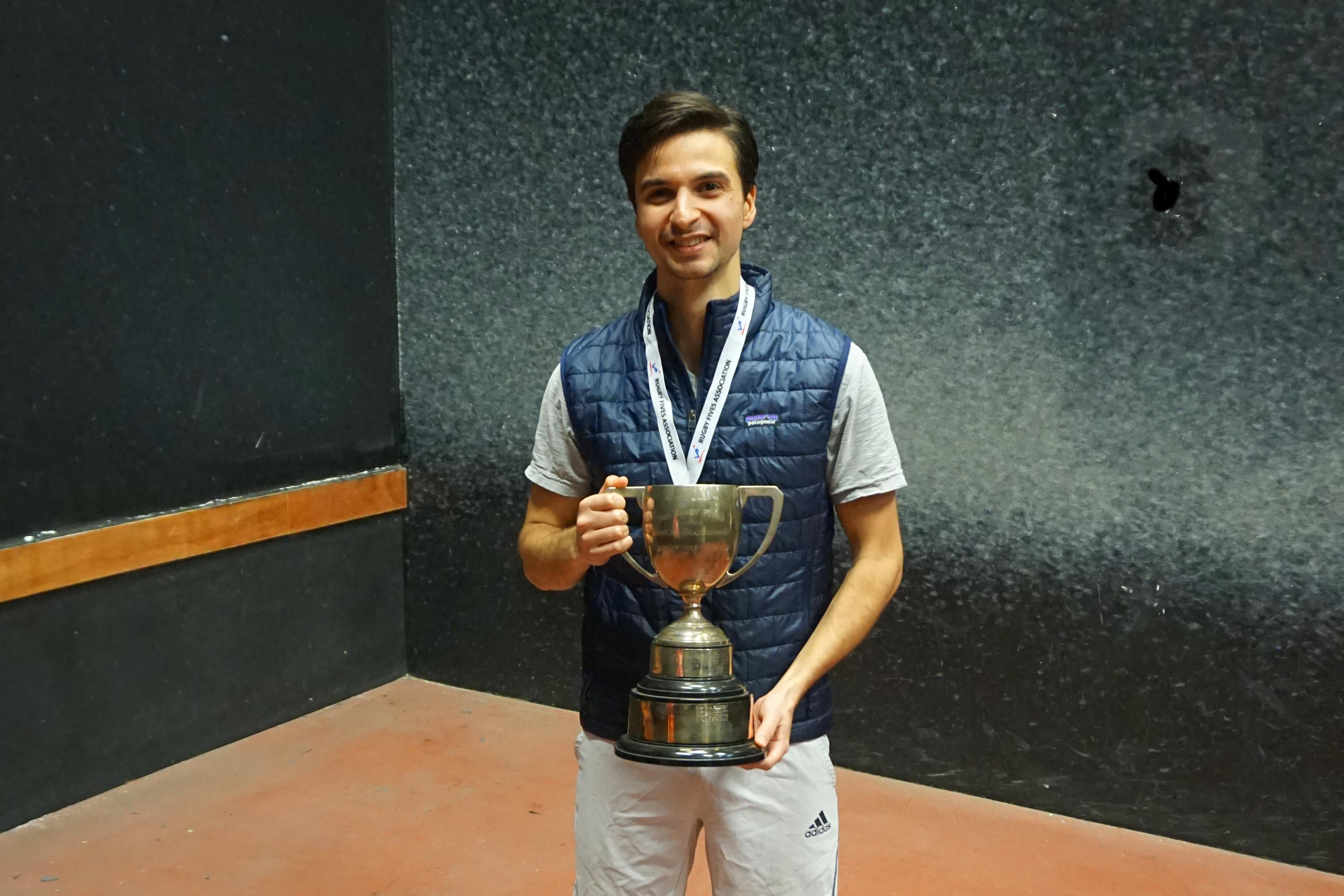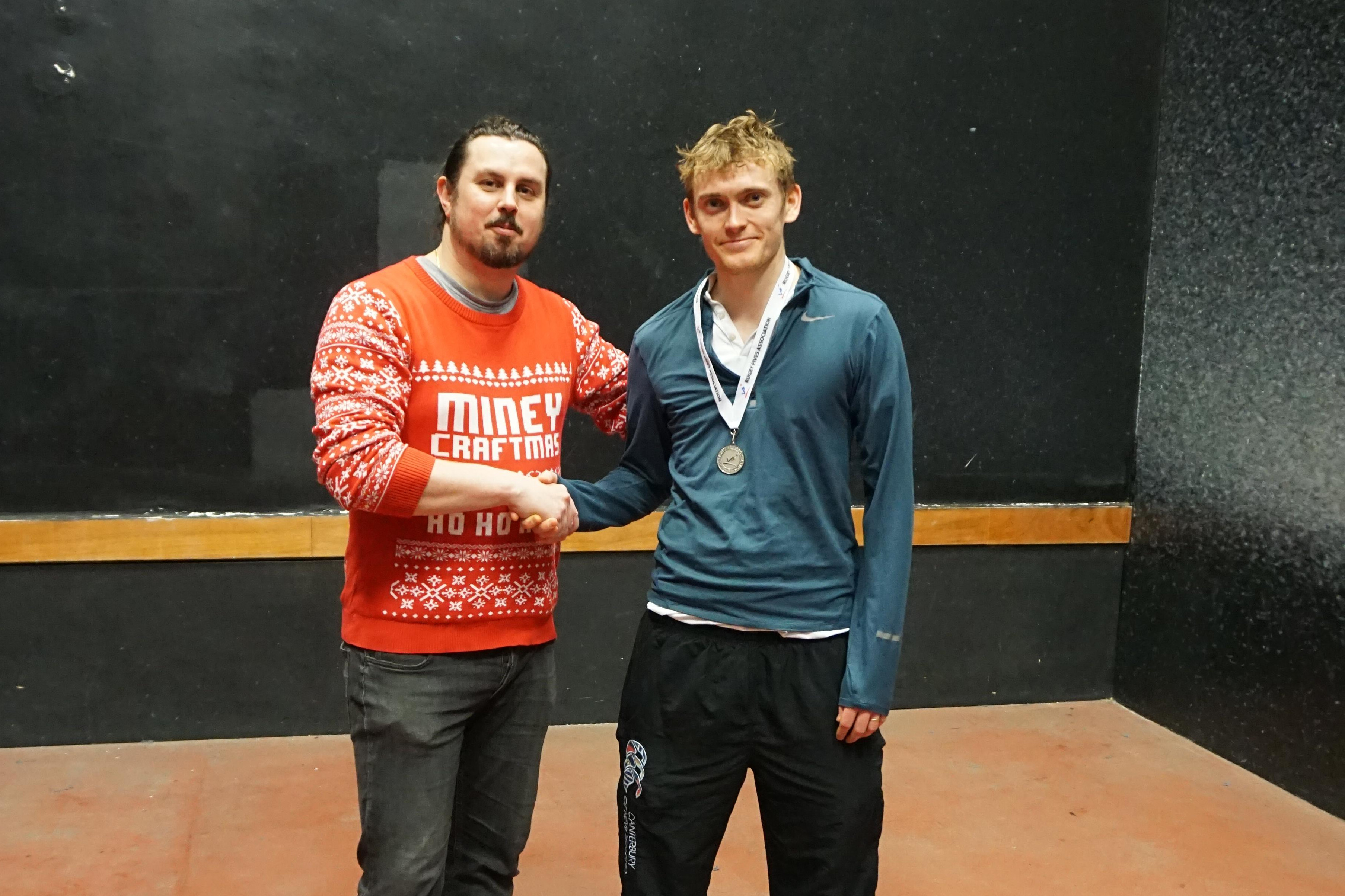Organiser Charlie Brooks reports: Dan Tristao retained his National Singles title, beating Ed Kay in another final of supreme quality. For the second year in a row, Ed pushed Dan to his limits, forcing game ball in the second game, but fell agonisingly short. Dan’s ability to relentlessly move his opponents to every inch of the court was apparent throughout the tournament and he was a deserving winner of his fifth crown.