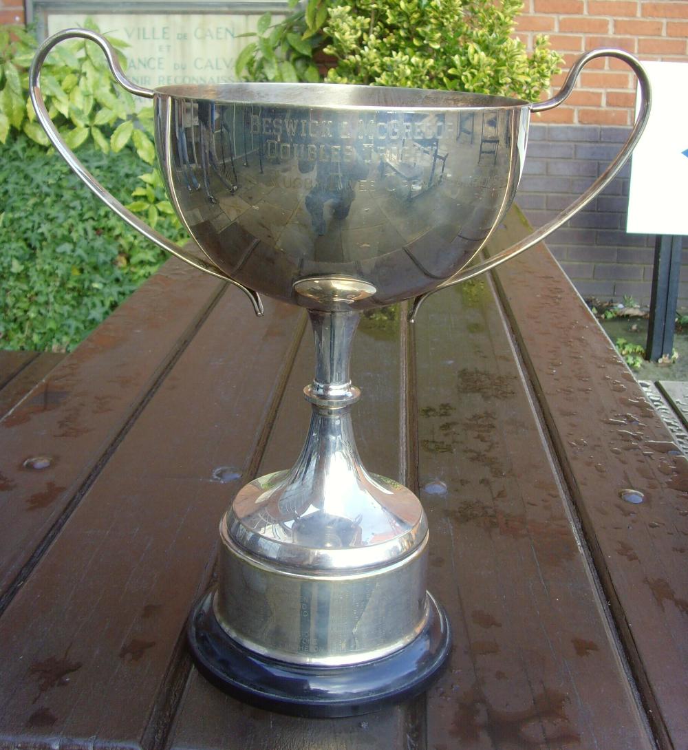 The trophy for North West Doubles presented in 1968 by Fred Beswick and Danny McGregor