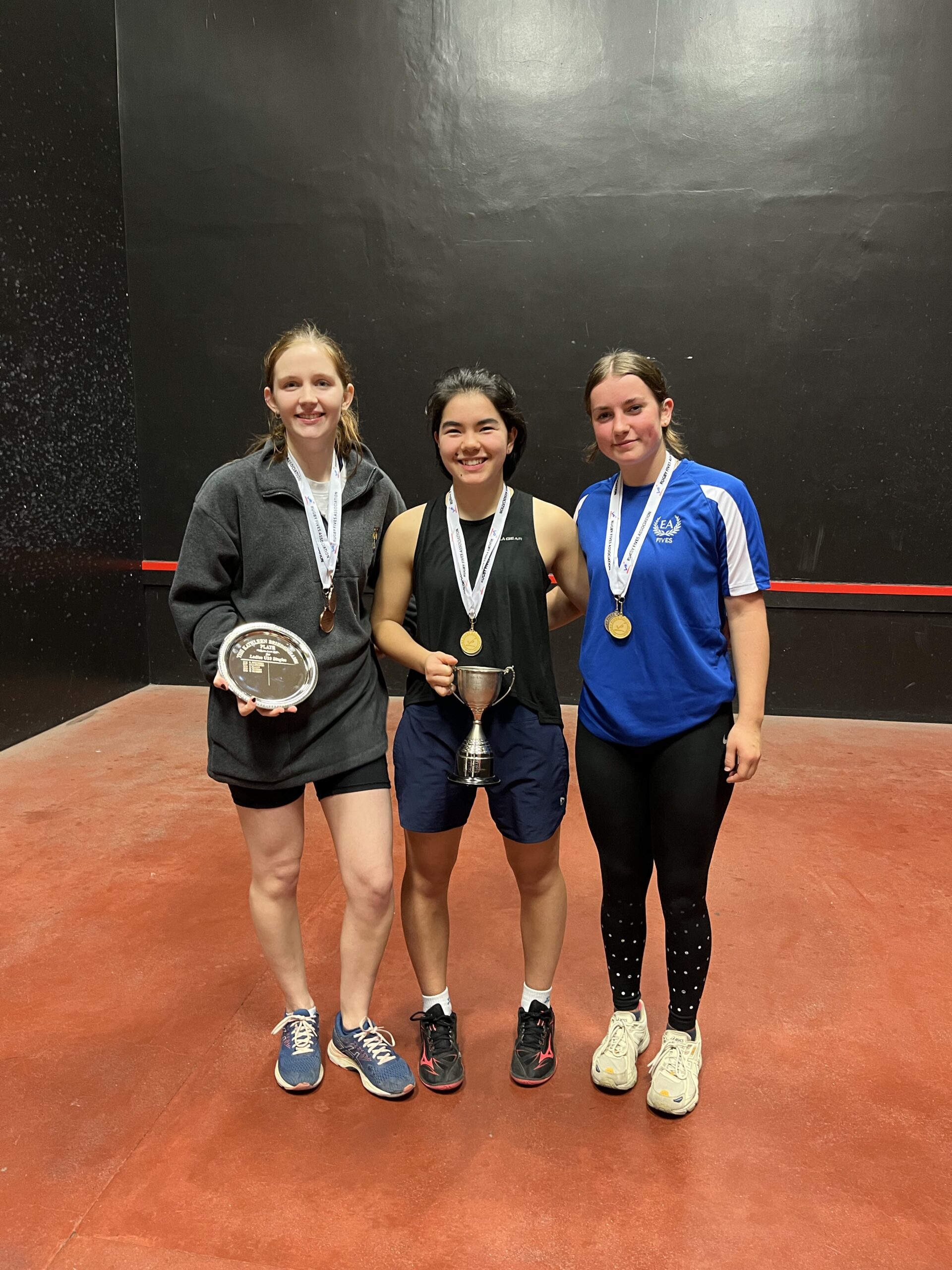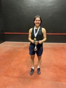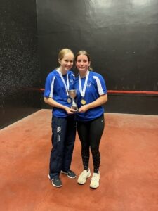 The Singles championship was won in imperious fashion by National Schoolgirls U18 champion Camille Beattie from the City of Durham club, who conceded just 7 points on her way to the title. However, losing finalist Rosa Ogilvie had her revenge in the Doubles, teaming up with fellow Edinburgh Academy pupil Olivia Smart to record a win over Camille and Imogen Wright — albeit by the narrowest of margins: 16-15. This is the first time since the inception of the event in 2016 that both titles have been won by players of school age. And surely the first time in any championship where the two plates have been won by sisters!