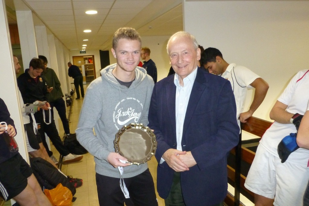 Other than that, the matches went to seeding until the semi-final, where Theo Parker (Bristol) managed to overcome the left-hand hard hitting of his fellow Bristolian Ollie Arnold. This set up a final, played on Sunday morning, between two familiar foes: Butler and Parker. David stormed ahead in the first game, playing a nice line and length, and tiring Theo out on the hot St Paul’s courts, closing out the first 15-7. Many expected Theo to roll-over in the second, but he came out strongly, hitting some nice winners and serving exceptionally. But David, now a seasoned singles ‘Top Tenner’, managed to weather the storm, claw back a lead, and eventually close out a deserved victory. Congratulations, Dave.