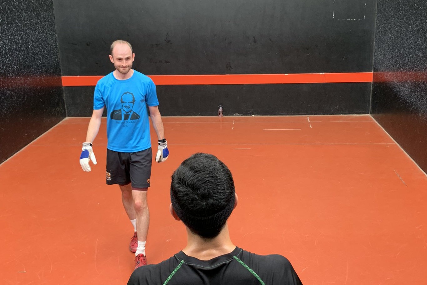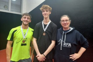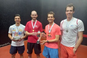 STOP PRESS Honours were shared at the London Open as Dan Tristao won his third Singles title at this event, beating Will Ellison in the final, while Will then got his revenge in the Doubles, playing for the first time with Ollie Arnold against Dan and his new partner Ben Beltrami. In the two fiercely contested Plates Cameron Low got the better of City of Durham’s Oscar McIntyre in the Singles, only to be beaten, playing with Louise Mathias, by Oscar & Lewis Keates in an extraordinarily close Doubles final. Special mention should be made of Ben Beltrami, who hit the ball in his Doubles match as well as any player on the fast front courts at Alleyn’s, and of Louise, fully recovered from her wrist injury in the spring, who now forms an impressive mixed doubles partnership with Cameron.