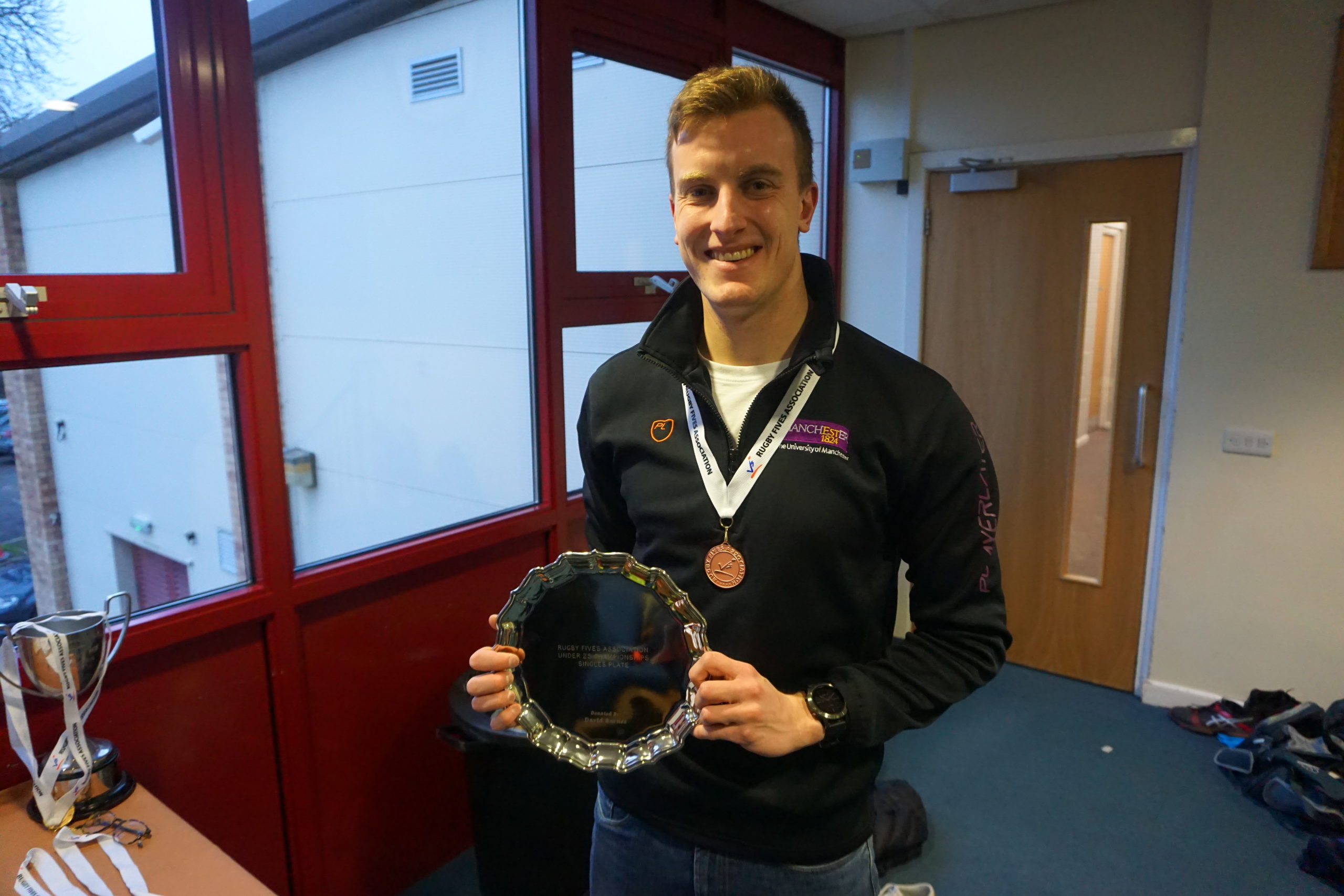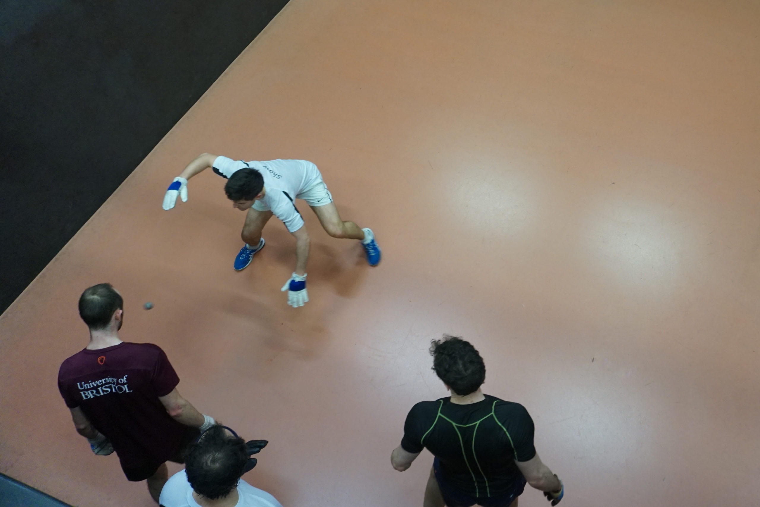 While the main draw was occurring on the Saturday afternoon, the 22-strong Plate competition was progressing in time-honoured fashion of best-of-three to 6. Smith progressed through one half of the straight knock-out comfortably, while the other half of the draw also took longer than expected, with the other semi-final between Chai and Naum having to come off court at one game apiece, to return on Sunday morning as well. Unfortunately, Chai had to progress after Naum was let down by the Oxford teammate who was meant to drive him. This gave a final match-up between Smith and Chai, with the former battling back from 9-5 down in the first to win the Singles Plate after multiple near misses.