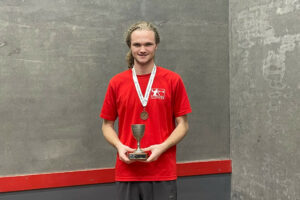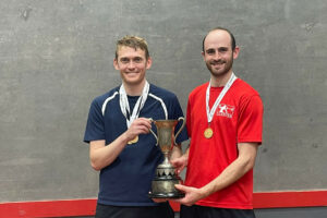 STOP PRESS: It was a successful defence of their titles for Ed Kay (Singles) and Ed & Ollie Arnold in the Doubles as the Yorkshire Open was played out for a second year at the Derby Moor Fives Club in Littleover, Derbyshire. Warm thanks go to co-organisers John Hawke and Lewis Keates as they organised and victualled a small but neat entry of 18 players over the course of the weekend.