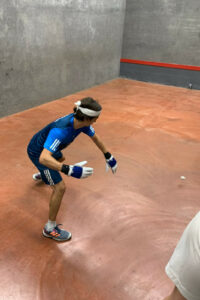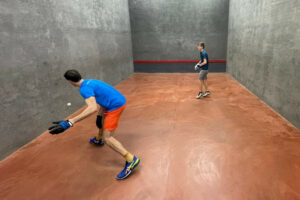 The organiser and tournament entrants are hugely grateful for the use of the superb Derby Moor courts and for the unstinting support provided by the club members. Special thanks go to Lewis Keates, who cajoled many participants into entering, especially those Fives ‘big names’ who showed us all how the game should be played. In a way, Lewis got his just rewards on the first day — more of that later.