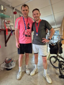 The Doubles was the now traditional giant round-robin – the fairest and most satisfying way to adjudicate! Games were played to 11 so as to manage encroaching fatigue, and the arrival of Helena Tunks, Tim Hebblethwaite, Savanna Leboff and Rupert Mathieu over the horizon brought a welcome infusion of energy. Again the priority was on points scored but this also ended up correlating with games won. Particular highlights were the indefatigable energy and accuracy of Mathieu, some very well contested matches between, for example, Lacewing & Ord and Vernacchio & Leboff and the former versus Tunks and Hebblethwaite. Chai & Mathieu took a very solid and deserved gold medal, with Carr & Keyes and Thursfield & Hatton fighting hard for silver and bronze respectively.