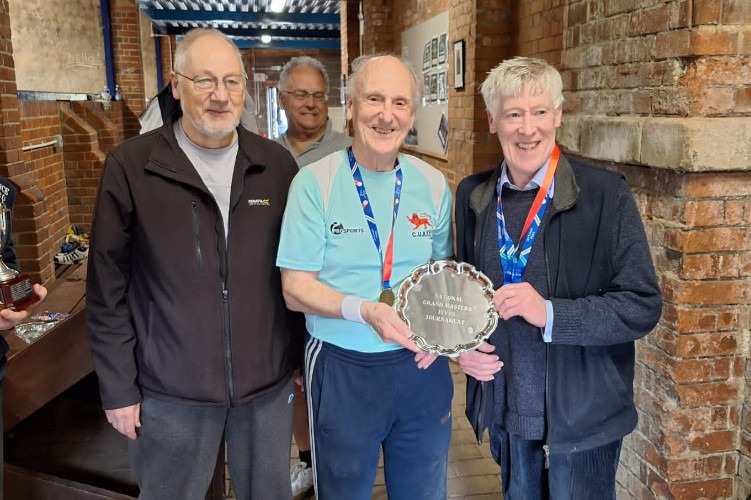 To guarantee a good day’s Fives for all 5 pairs concerned, organiser Brian Kirk invented a competition, appropriately dubbed The Legends Plate, played out as a round robin with pairs randomly selected. From this series of matches John East and Mark Kiteley emerged as winners.