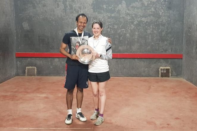 STOP PRESS Louise Mathias & Ollie Arnold successfully defended their Winchester Fives Mixed Doubles title at Bradfield College, defeating organiser Shinan Zhang and her partner Lewis Keates in the final 15-12, 15-8. Eton Fives players Emily Scoones & Abhishek Bhattacharya won the Plate, defeating Maddi Gibbons & Chris Davey. A smaller than usual entry for this traditionally fun and friendly event. We hope to see some regulars back again next year, fit and in practice after the disruption of the past two years.