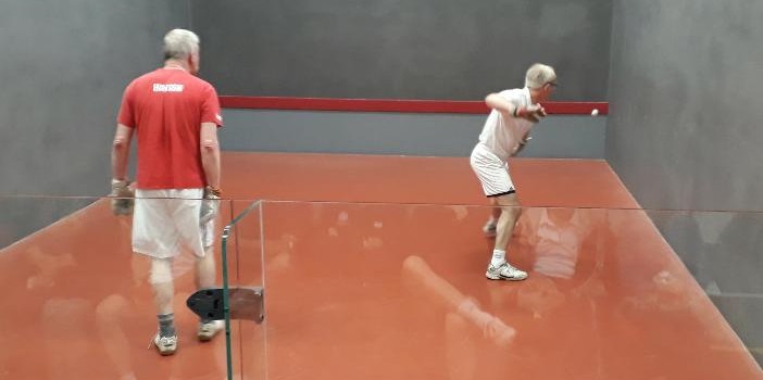 A few accidents and injuries, including a broken leg for organiser Brian Kirk, reduced this year’s entry in both Singles and Doubles, but the enthusiasm for non-stop, all-day Fives was in no way diminished. The new ball largely behaved itself on the glass-backed Cambridge courts, though not all competitors were comfortable on what some feel is a slippery playing surface.