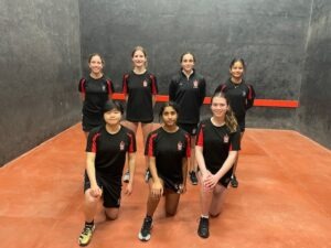 26 players from three schools contested the annual SE Regional Girls’ Fives Championships at Christ’s Hospital. There were two age groups, U14 and U18, with singles and doubles at both levels. Players from Alleyn’s dominated the main finals, while those from Eastbourne College enjoyed success in the Plate finals.