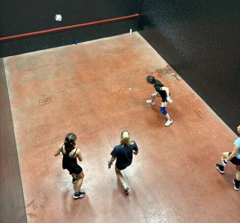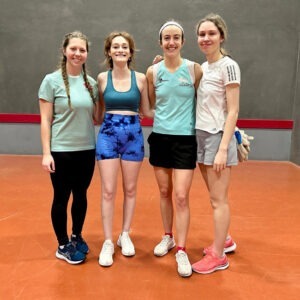In the women’s match the teams were competing for a newly minted trophy named the Warner Tower in honour of Dick Warner – the Club’s Senior Member and stalwart of the PvP fixture. The result was decided solely by the singles contest, as the Past and Present sides mixed together in the doubles for an Owers Tournament style competition. Phoebe Thornhill’s Past side edged an overall win, with some close scores across the order including a tense 15-12 battle between the Past’s Viola King Forbes and Present captain Abbie Evans, with Abbie coming out on top.