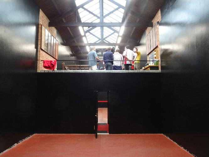 After a period of some years where one court was used for the storage of theatrical props the College has now restored the two courts to full use. The entrance hall and gallery have been carpeted, display boards and viewing facilities improved and the walls painted black.
