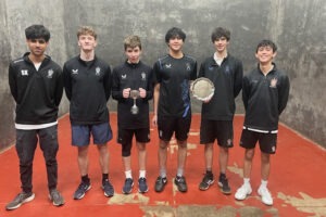 Henry Swales reports: The South East Regional Schools’ Championships returned to Tonbridge School for a day of highly competitive Fives. Teams braved wet external conditions and the vicissitudes of M25 traffic, with strong representation from Tonbridge, Alleyn’s, Christ’s Hospital and, new this year, St Paul’s. The standard of play was consistently high, with a number of closely contested matches across both the singles and doubles competitions.