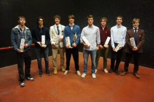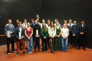 Bob Dolby reports: Last year’s Men’s Varsity Match was close, with Oxford just one point up after the Singles and Cambridge pulling back 8 points in the Doubles. This year’s contest was not quite as tight in the end but the mathematical remarkableness continued, with the Doubles being tied and Cambridge consequently winning by the exact margin of the lead they had earlier amassed in the Singles – 17 points. In victory the Light Blues had much to thank their bottom IV of Pyman, Walton, Glover and Menhart for, while the top IV, without Ben Yass, battled hard against the experienced Oxford first IV, from among whom Seb Ion was declared Man of the Match.