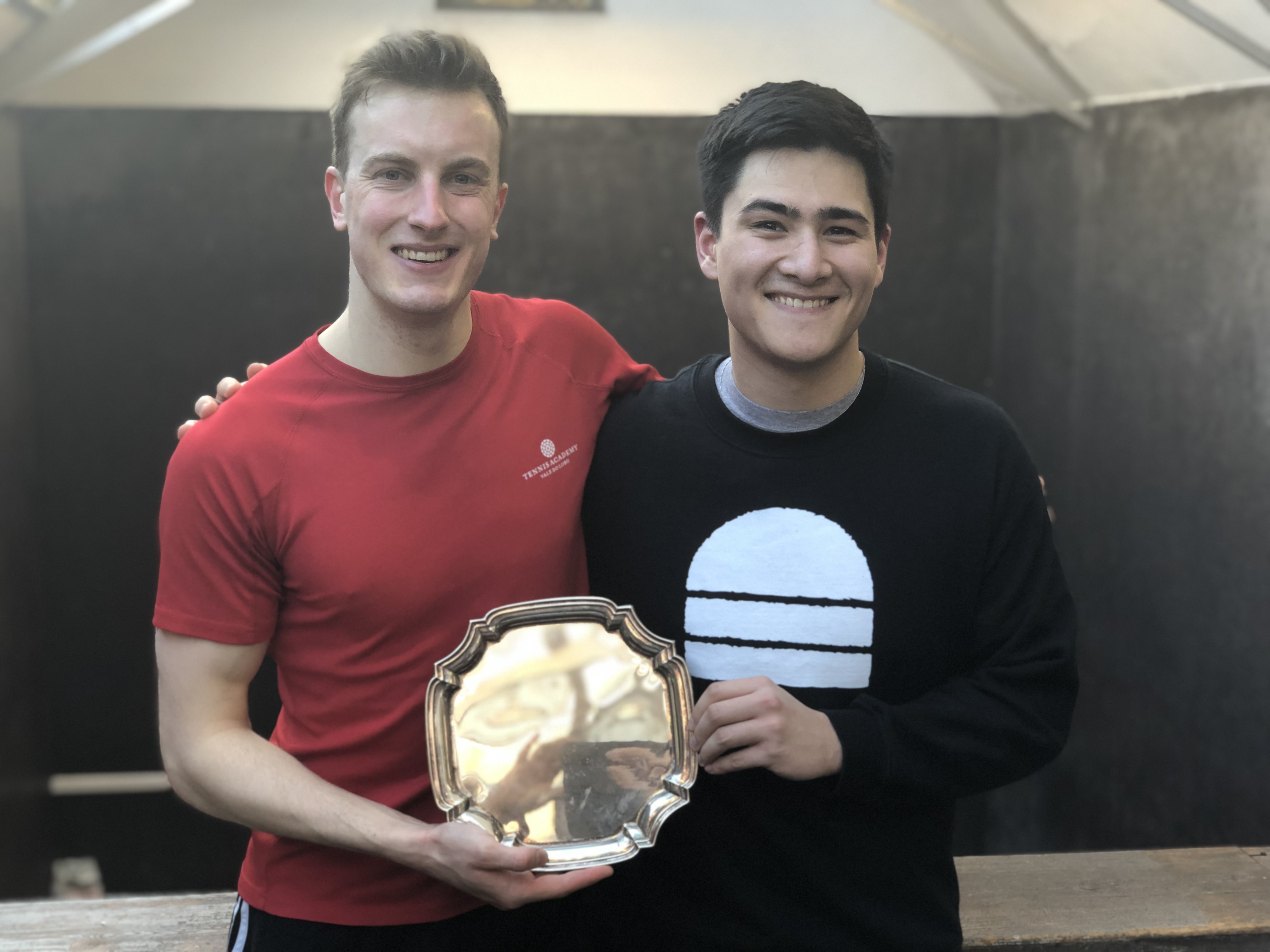 Organiser Harry Akerman reports: 16 pairs entered this year’s ‘Barnes Bridge’ and despite the post-storm British Rail excuses of ‘trees on the line’ and ‘scaffolding on the line’, all 32 players made it safely to Winchester College for what could be the last Barnes Bridge before the new courts are opened.