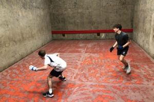 In the U16s Luke Wyman got particular value for his entry fee, winning his first-round game 16-14 and his quarter-final 8-11, 11-9, 11-3. Then his court time came to an end in the semi-final where he found Theo Munaretto Day too strong an opponent. However, the star of the show was Plum Mannion-Miles, using a powerful left-hand that took to the final with comfort and helped him overcome Theo 11-6, 11-1 to win the U16 trophy. The first Plate was won by Marlborough’s Bradbury, the 2nd Plate by Vorobev from Winchester.