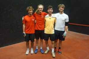 6 pairs contested the Doubles. With Archie McCreath no longer eligible, a new winning combination was guaranteed. With all pairs either unfamiliar with each other or not having played together since their schooldays and every player striking the ball ferociously round all four walls we had more lets than the proverbial hot dinners. That notwithstanding, Marcus Cloke Browne & Freddie Kottler produced some cantabrigian magic to overcome Bristol’s Jeremy Hughes & Alex Upton in the Plate; and Cameron Low “played a blinder” (thus the GenSec), ably backed up by Theo Vernacchio, to beat Stuart Scott & Gwydion Wiseman in the main final. It was a good day for Alleyn Old Boys: Theo’s first title in a senior tournament, Gwydion and Stuart Scott’s 3 Silvers between them, and Yarin’s Plate. And a day to be proud of for Bristol University’s resurgent Fives Club, too.