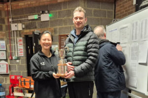 STOP PRESS Tim Hebblethwaite won the President’s Cup for a second time, having won with Emrys Thursfield in 2021, and Shinan Zhang became the third woman to have held the trophy after Martha Nugent in 2018 and Helena Tunks in 2022. In a traditionally long and full day of social but competitive Fives there were plenty of surprises and several three-gamers to report. In a further boost to Mixed Doubles, three of the four competitions were won by mixed pairs.