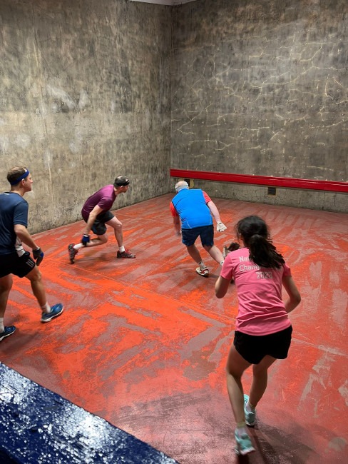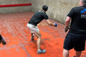 Finally the Mate’s Plate was won, of course in three games, by Lizzie Ware & Theo Parker. Last year Theo was disappointed to exit in three matches, this year he complained that the final was his “fifth match of the day!” It seems that, for some, the amount of Fives played on one day has to be just right. Meanwhile Lizzie just got on with it.