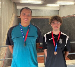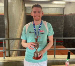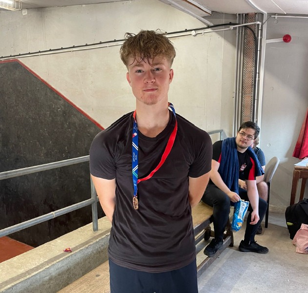 STOP PRESS Ed Kay successfully defended his South East Open Singles title in the latest of a series of finals against Dan Tristao. They had beaten Theo Parker and Julian Aquilina respectively in their semi-finals. It is the fourth time Ed has won the title. Charlie Lacewing from Christ’s Hospital won a fiercely contested three-game Plate Singles final against Patrick Harrison from the Edward Alleyn Club.