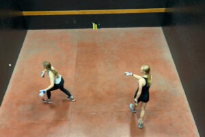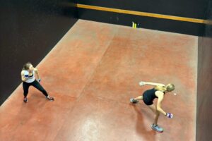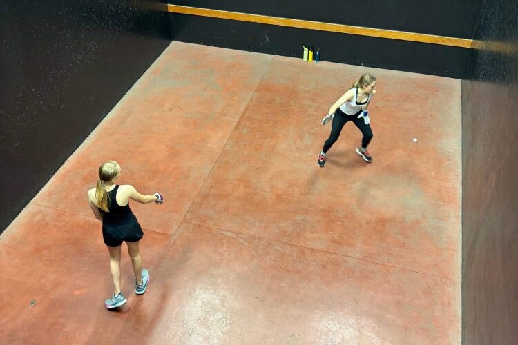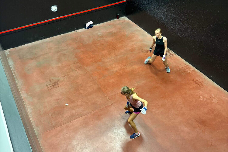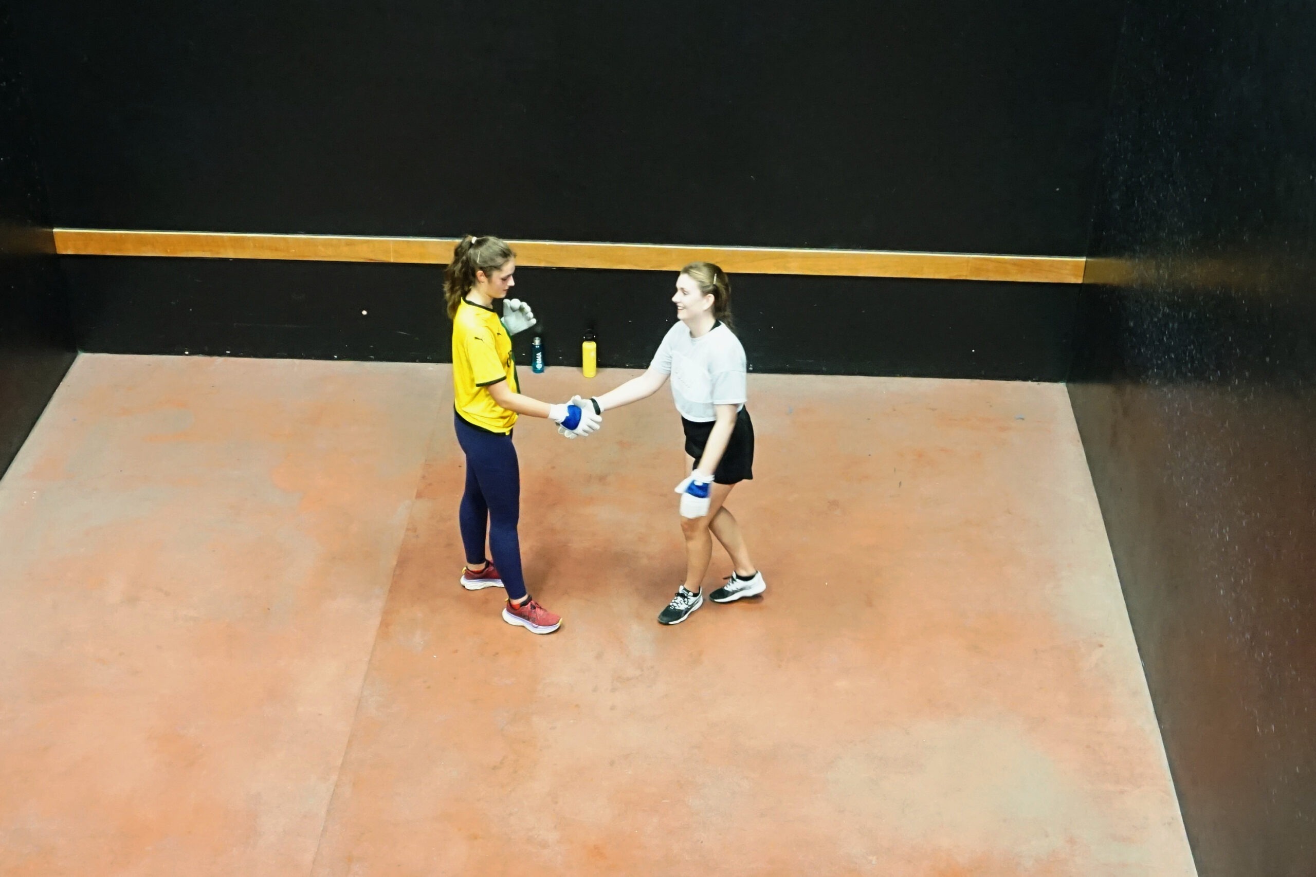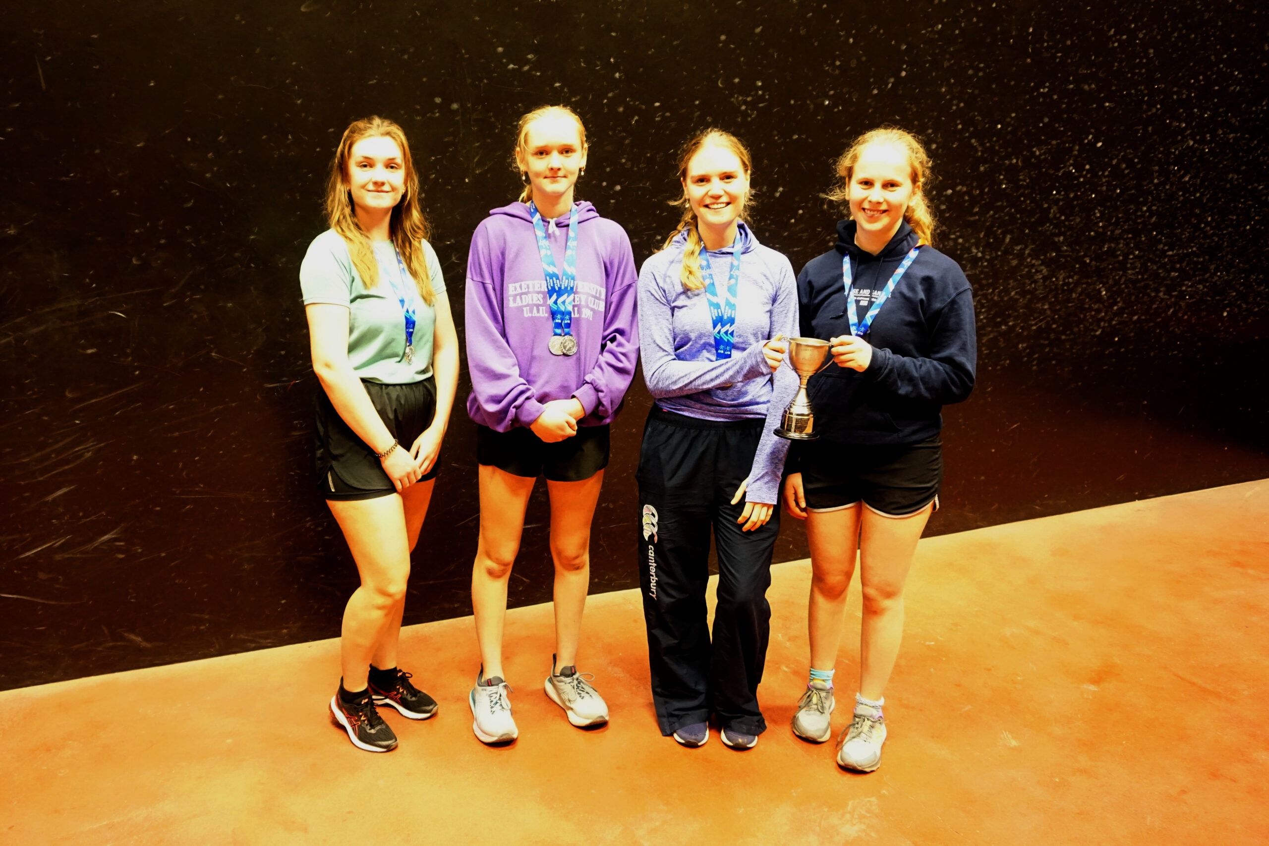 STOP PRESS An entry of 10 for the Singles, including a squad of 5 from Cambridge Past and Present, contained neither of the winners from the past two years, Zara Elliot and Camille Beattie, both still eligible but not entered. A new name was therefore bound to be inscribed on the trophy. We were delighted to have four likely contenders for the title: Kirsten Bell, a previous captain of Fives at Durham University; Savanna Leboff, the 2021 winner of the U23 Doubles; Sophie Lundie, returning to the senior game in London to pick up where she left off at the Edinburgh Academy, and Jemima Mitchell, the current National Schools U18 champion in Singles and Doubles. It was no surprise that these four contested the semi-finals, with Kirsten nearly taken to three games by Savanna and with Jemima a little more consistent than Sophie over the course of their two games.