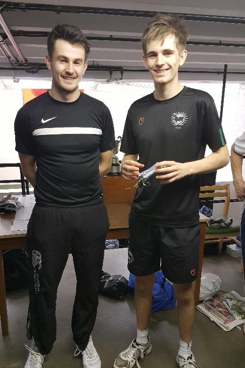 But we did have our Irish Connection, namely Morgan Spillane, whom Gareth had paired with new National Singles Champion Dan Tristao. Those who regard CH, where Morgan has learnt the game, as nearly as far flung as the rest of the EU were somewhat surprised to find that left-handed Morgan hits the ball with Ollie-Arnold-like power and makes a mistake only once every 90 minutes. Dan was therefore able to indulge himself in the final with every shot under the sun, and quite a few of them under the bar, and still come out well ahead of Tim Hebblethwaite & Andy Passey. All four players in the final were debutants, all are now members of the RFA, and proceedings were brought to a witty close by President Bernard by 8.pm; what finer advert for the event?