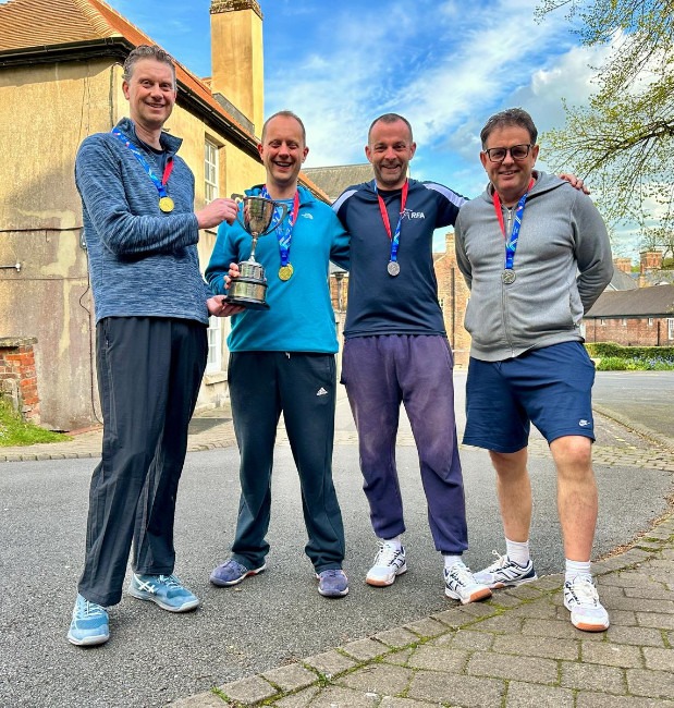 STOP PRESS No such thing as an easy win in this age category. Both the Singles and the Doubles final went to three games, with the defending champions successfully retaining their titles only after the closest of contests. The Singles saw an impressive performance from debutant Giles Munn, who fought his way through the field from 1st round to the final; the Doubles remains memorable among other things for Tom Kiggell and Dwight Murdoc playing in both round robins, in one group as Kiggell & Murdoc and in the other as Murdoc & Kiggell. Mr Hawke, ever inventive.