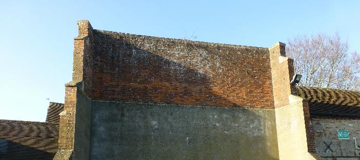 Marlborough Fives supremo Tom Kiggell and I were kindly invited to visit the School, inspect the court and provide some advice as to the game or games which might be played on it. The wall itself is Grade II listed and cannot therefore be extended or built onto in any way, thus limiting the options, but it is in good condition and fully capable of withstanding the impact of a fives ball or handball. There is a shallow ledge running across the front wall at about 3 feet from the ground, and short side walls (more like wings) project from the front wall at about 45º.