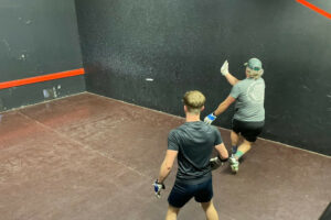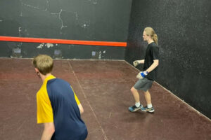 In the Doubles, the entry of Brooke & Grant caused some concern that the seedings were incorrect (assuming a missing ‘s’). In the end, the Bristol pair of Stephen Brooke and Peter Grant played well to come second in the Plate. Oscar & Anthony also achieved a very creditable result in their match against Dan & Ben, with Sam & Lewis overcoming Cameron & Archie McCreath in the other semi-final. In the final, Sam & Lewis built up a promising-looking 6-0 lead, and had one later chance, but Dan & Ben somehow managed to edge past them to win the first game and, following a close second game, took the title in another inspiring final. Charlie Lacewing & Dwight Murdoc were the victors in the Plate, winning all four of their games.