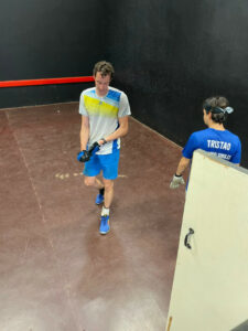 STOP PRESS Dan Tristao did the double, winning his 6th West of England Open Singles title at the expense of Ben Beltrami, then pairing up with Ben to defeat Lewis Keates & Sam Russell in the Doubles final; it was Dan’s 5th such Doubles title and their first as a pair. Charlie Lacewing also continued his fine record in Plate competitions by winning both the Singles and the Doubles Plate, the latter with Dwight Murdoc. Oscar McIntyre swept the board in the Plate for quarter-final Singles losers.