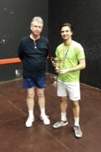 In the final, Ben attacked from the start to take a quick lead. But, although declining a let offered when 3-0 down, which would have been too tempting for most people, Dan then rallied, and went on to win the first game. Unfortunately, Ben had to contend with a slightly sprained ankle in the second game, which saw Dan emerge as the winner of a high quality match. Meanwhile, Charlie Lacewing won the main Plate, and Oscar the Quarter-finalists’ Plate – both fairly comfortably.