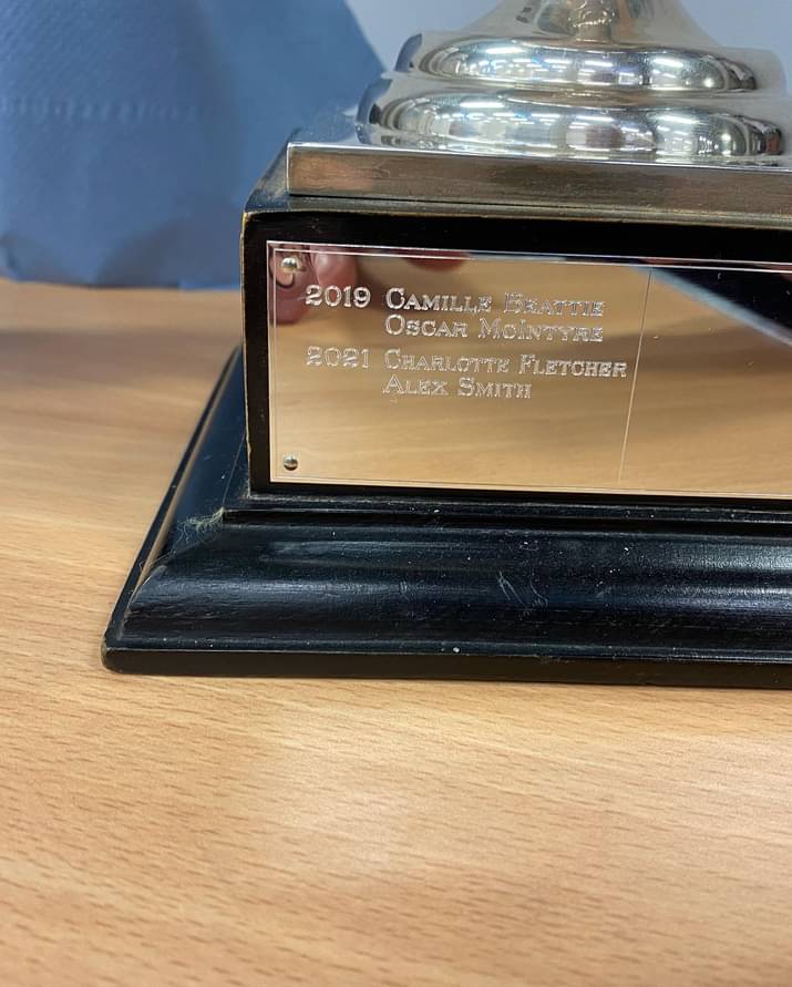 Eleanora V. and Simon Beattie with trophy ….